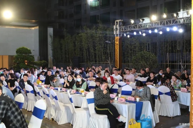 经销商晚宴当日晚6时许,以【乘“圣”跨越】为主题的,芒果体育集团第45届国际家具展接待晚宴暨2020年度优秀经销商颁奖盛典,在营销中心四楼景观花园隆重举行,来自全国各地的经销商朋友欢聚一堂,共同分享一场精彩纷呈的晚宴。
